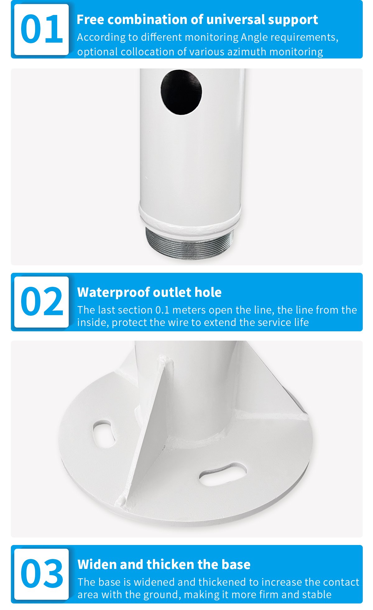 Color:White/Black/Blue Material: Galvanized steel ISO 9001-2008 Quality Control System Root Size:145*145*700 Standard Accessories : Lightning rod, bracket mounting wrench, white plug, instructions.