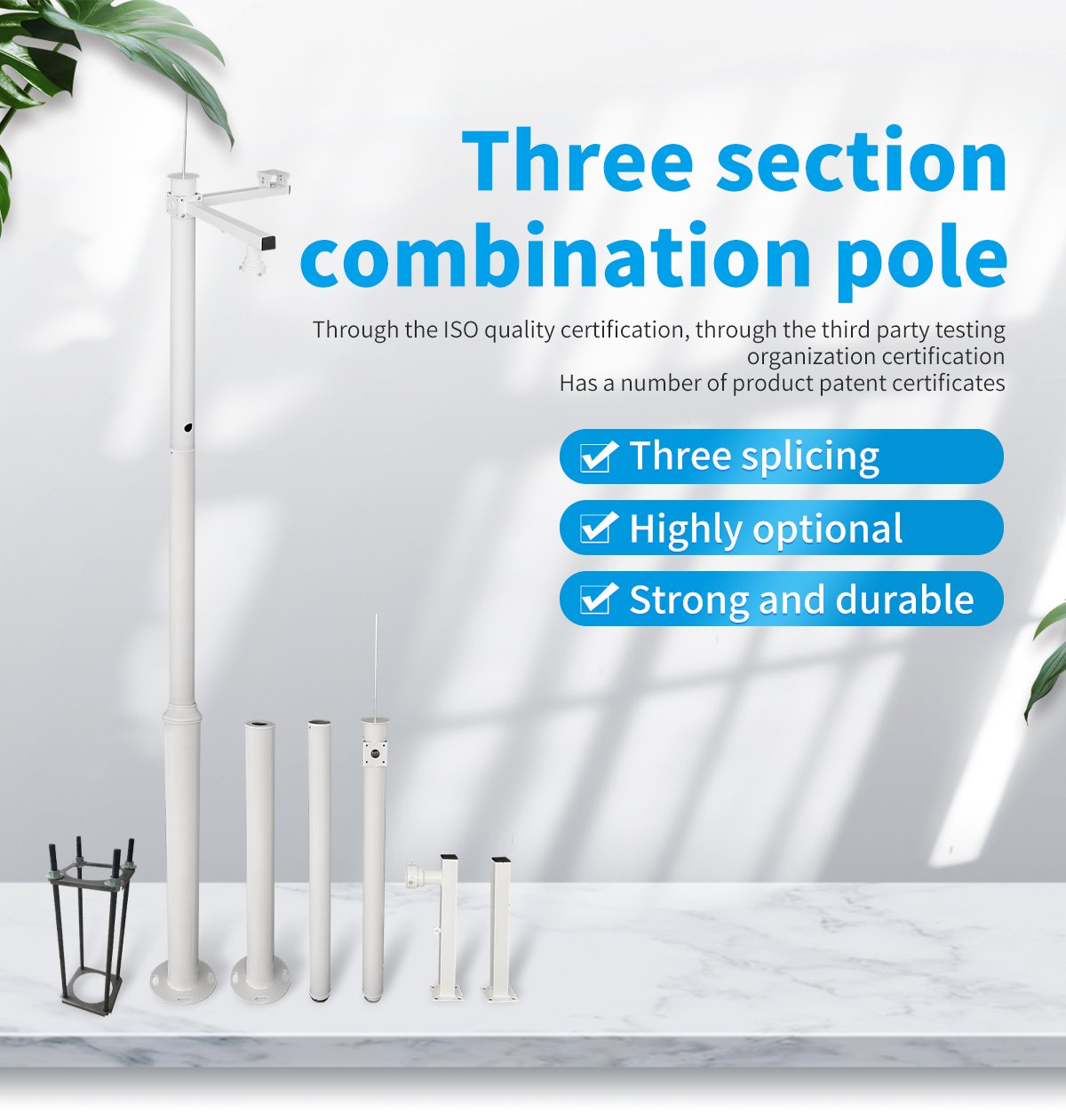 Material: Galvanized steel ISO 9001-2008 Quality Control System Root Size:145*145*400 Standard Accessories : Lightning rod, lock nut, bracket mounting wrench, white plug, turning parts, instructions.